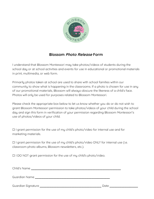 Carefully review and print p. 46 to sign and return, verifying that you have received and read through these Blossom school policies.